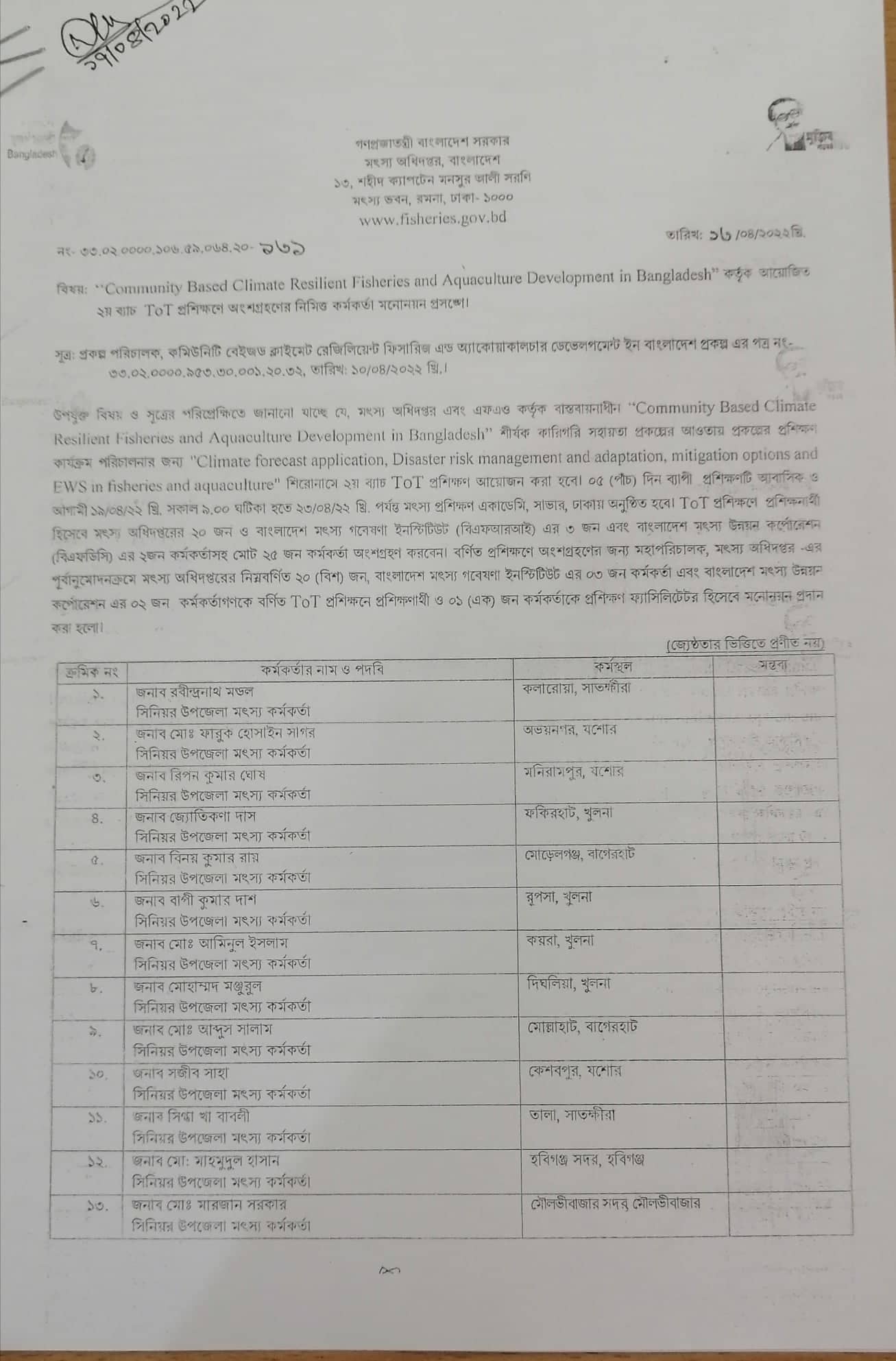 মৎস্যচাষী, মৎস্যজীবী মৎস্য প্রক্রিয়াকরণ সংশ্লিষ্টসহ অন্যান্য সুফলভোগীদের প্রশিক্ষণ প্রদান